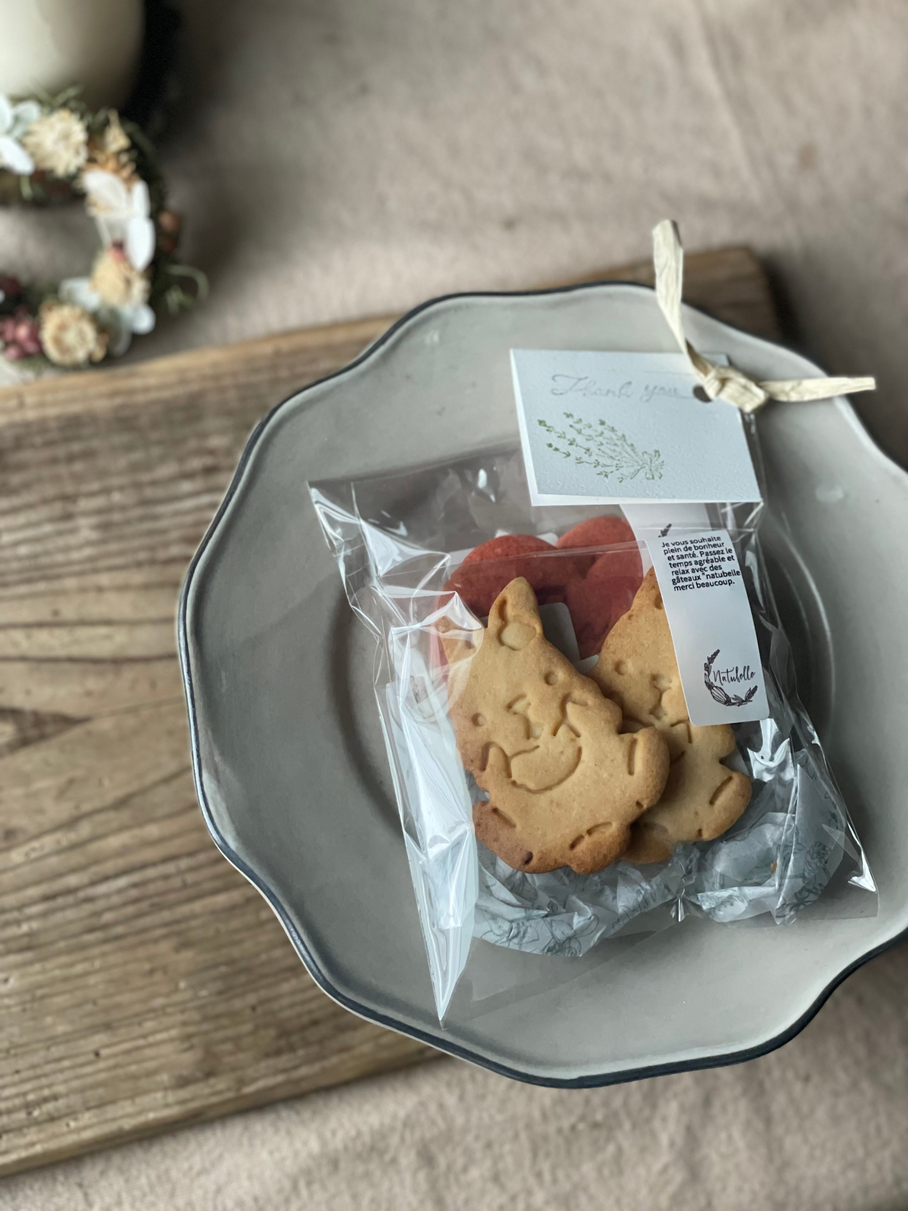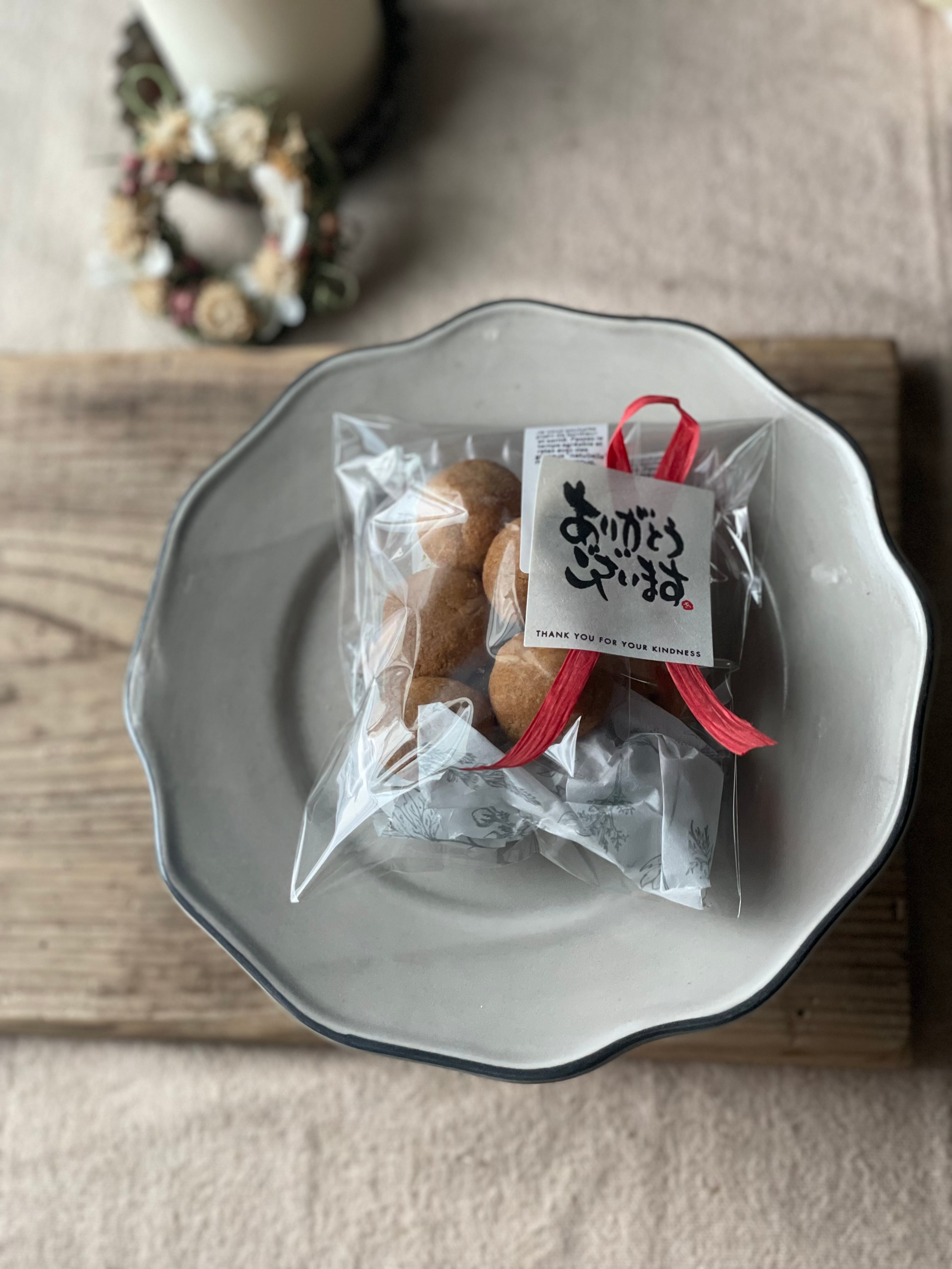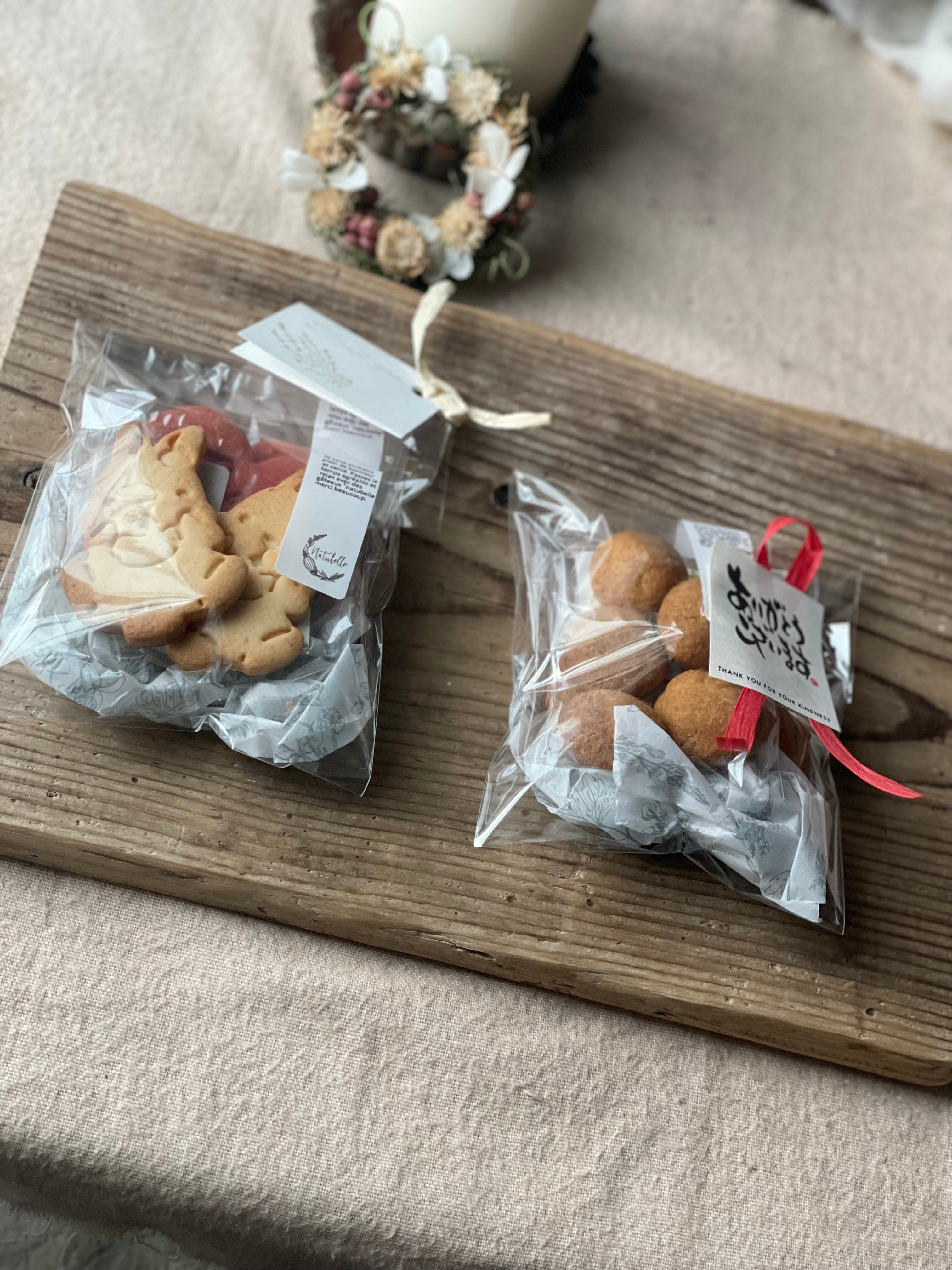 以下のクッキーのうち2種類をギフトパックにラッピングしております。